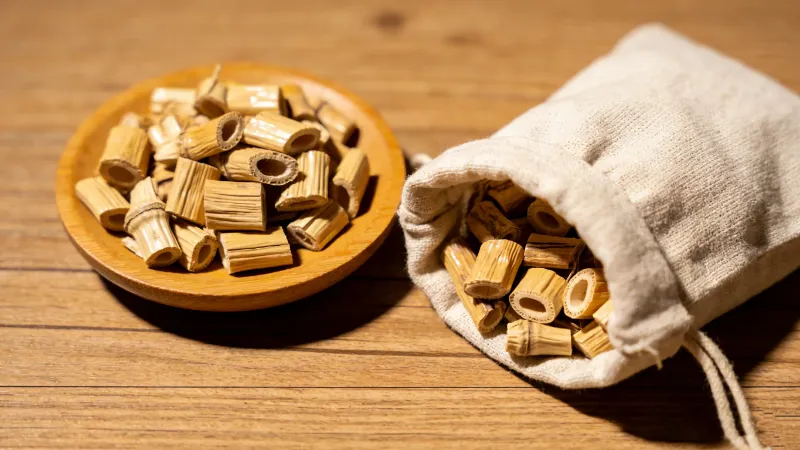 In summer medicinal baths, the sweet, cold, and moistening nature of Reed Rhizome helps dispel stagnant heat and promote fluid production to quench thirst.Its refreshing aroma, together with the relaxing effect of warm bathing, effectively relieves irritability and fatigue caused by summerheat, bringing a cool and comfortable sensation.