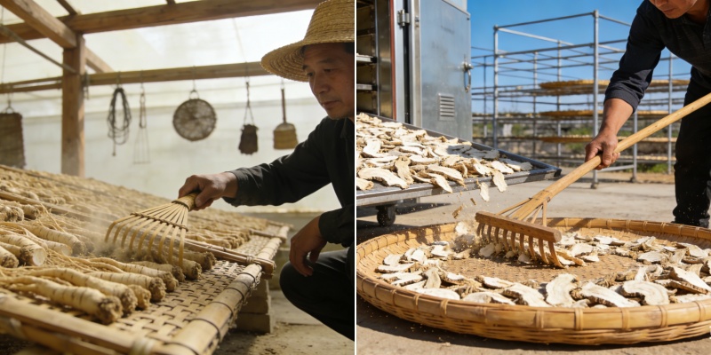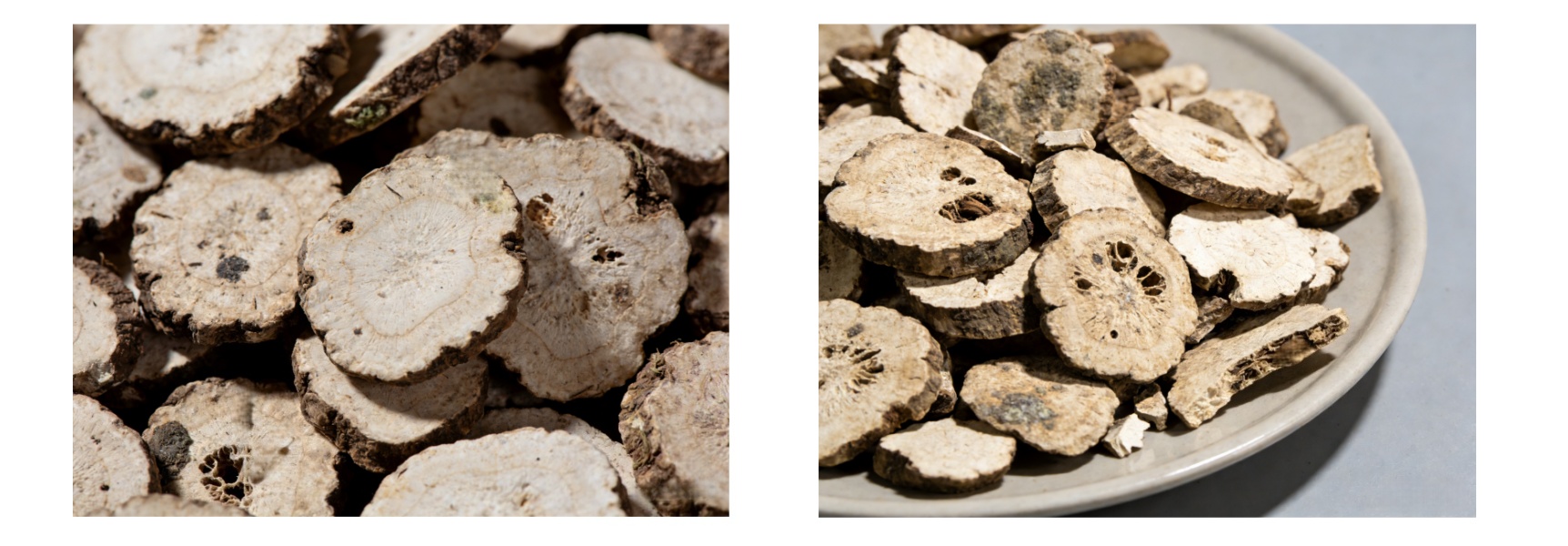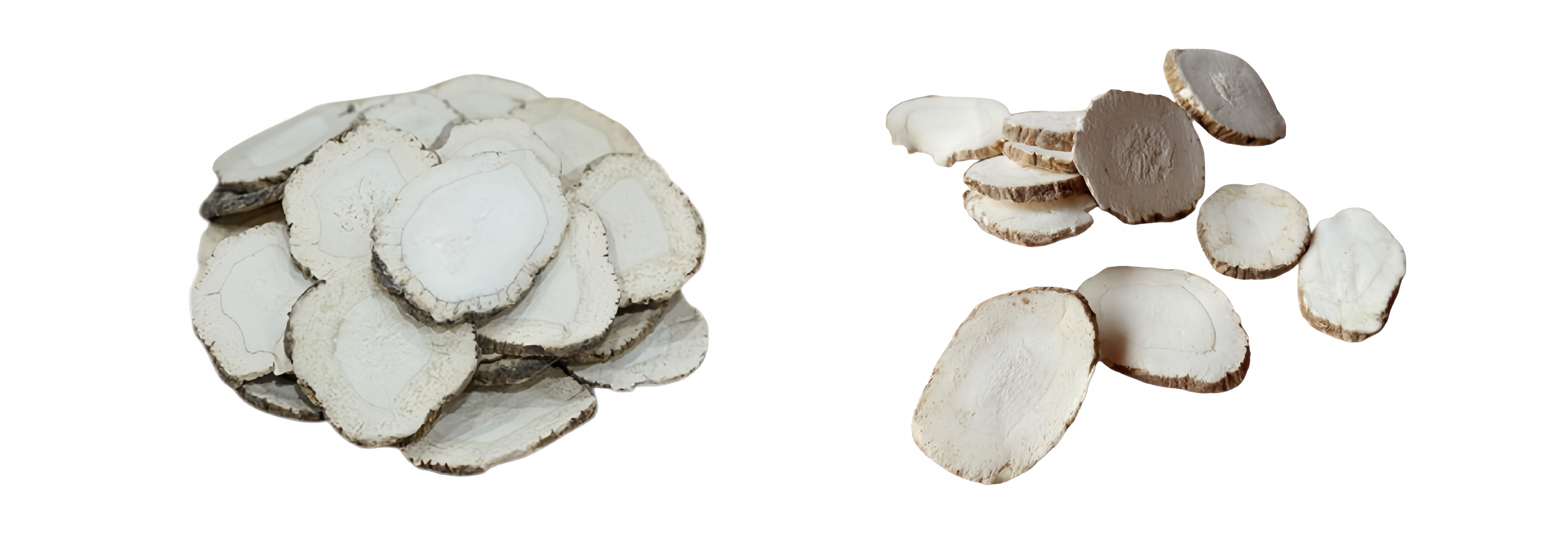 The roots are harvested in the autumn of the second year of planting, when the above-ground parts begin to wither. Immediately after digging, the stems, leaves, and soil are removed, and the roots are placed in a ventilated area to "sweat" for 1–2 days. This allows internal moisture to dissipate evenly, preventing internal mold. Subsequently, a "segmented drying method" is employed: first, low-temperature baking at 40–45°C until semi-dry to lock in the aroma maximally; then, sun-drying until completely dry. Products processed this way exhibit a pure white, highly starchy (floury) cross-section, with the aroma perfectly preserved.