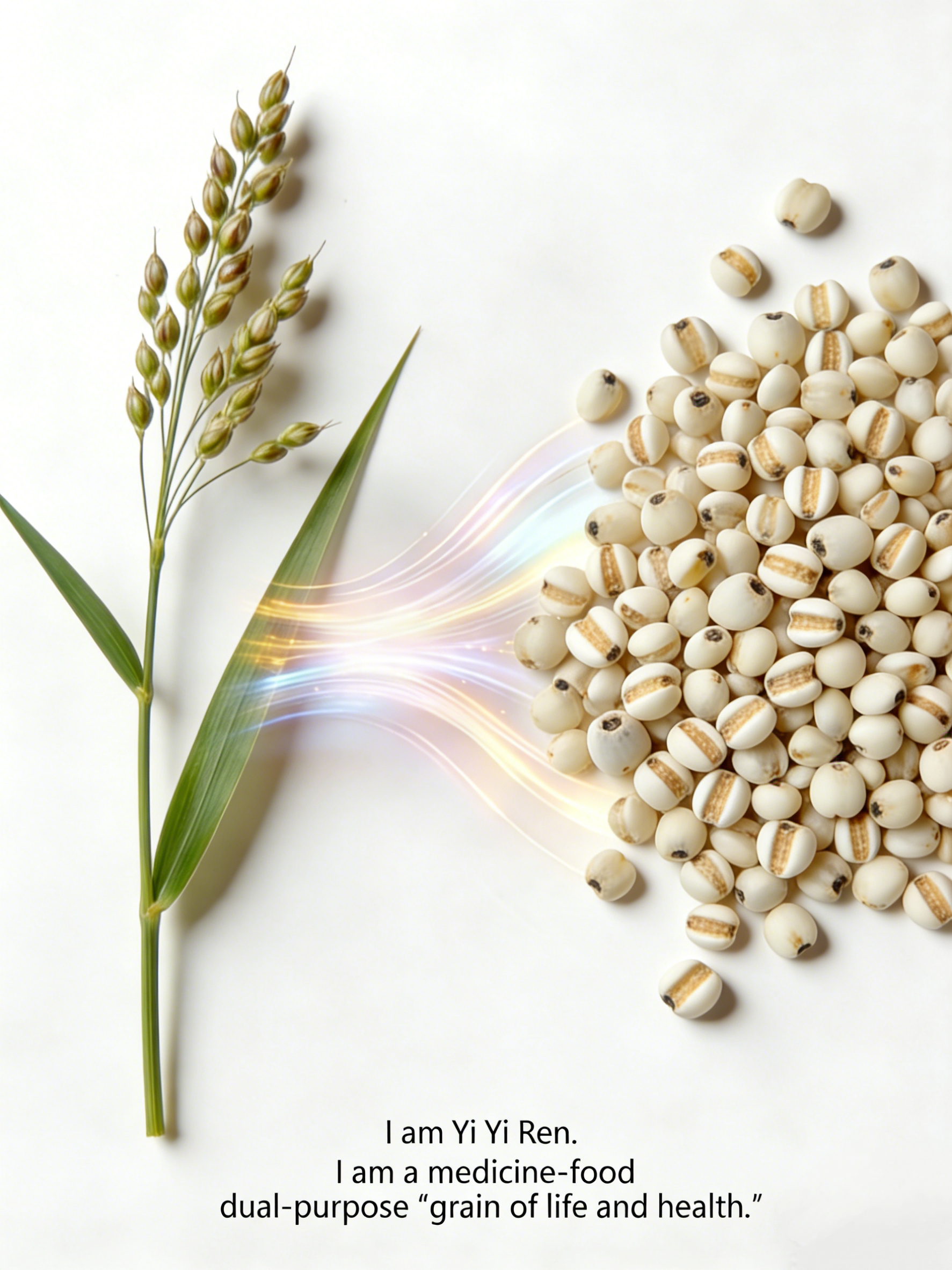 Coix Seed (Yiyiren) is the dried mature kernel of Job's tears, honored as the foremost herb for invigorating the spleen and percolating dampness, and serves as a classic example of medicine-food homology, praised as the "grain of life and health."