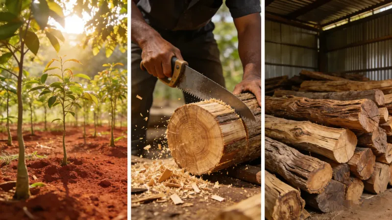 Growth Cycle and Sustainable Harvesting: Sandalwood grows extremely slowly, typically requiring 15–20 years of cultivation before its heartwood accumulates sufficient aromatic oils to attain medicinal value. China employs "dwarfing and dense planting combined with ecological tending" techniques to promote trunk thickening. Harvesting follows sustainable principles: typically, only selected plants over 25 years of age are felled, or the heartwood portion of the trunk is selectively harvested while retaining the sapwood to facilitate regeneration. After harvesting, the heartwood is split into small pieces and naturally air-dried in cool, well-ventilated areas for several years, allowing its aroma to mellow and deepen. Modern processing utilizes "low-temperature vacuum drying technology" to maximize the preservation of precious volatile components while controlling humidity.